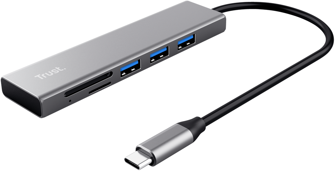 TRUST Halyx USB 3,2 Type-C 3 portos USB-A HUB, SD/microSD kártyaolvasó, szürke (24191)