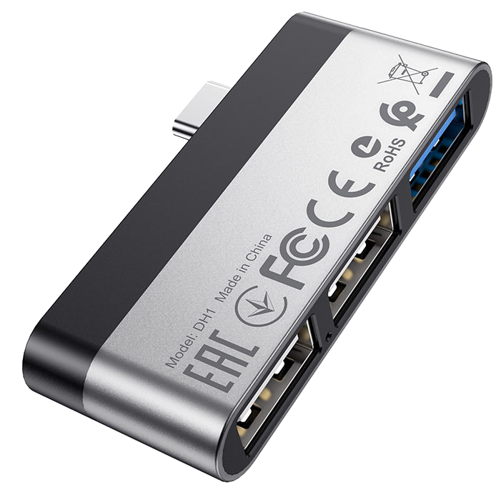 (38 db)BOROFONE USB Type-C 3 portos mini HUB, 3x USB-A, ezüst (DH1)
