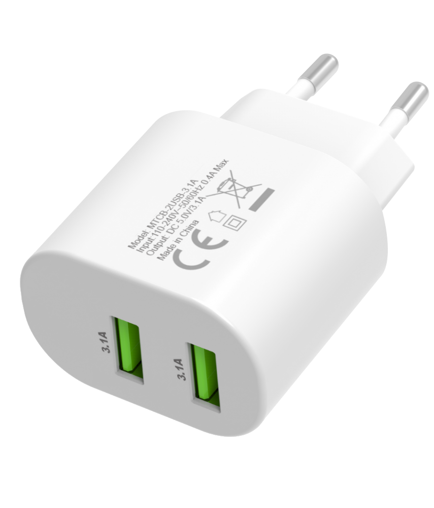 CELLECT hálózati töltő adapter 2 USB csatlakozóval, 3.1A (MTCB-2USBNE-3.1A)