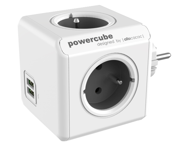 ALLOCACOC 1202GY/OUPC PowerCube Original Elosztó, 4 dugalj + 2 USB csatlakozó, szürke