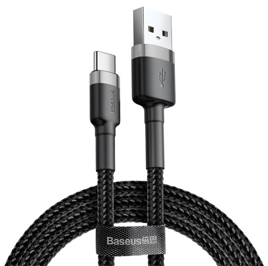 BASEUS Cafule gyorstöltő adatkábel, USB Type-A – Type-C, 0.5 m, szürke/fekete (CATKLF-AG1)