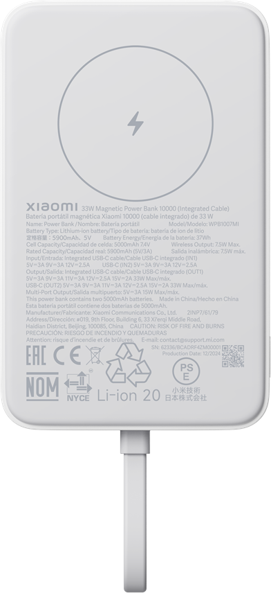 XIAOMI mágneses power bank, 33W, 10000mAh, integrált kábel, fehér (BHR9822GL)